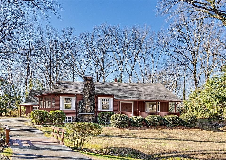 Charming and truly unique, this spacious home is filled with character and custom details in a fantastic location! Detailed woodwork, exposed beams, and built-in shelving create warm, inviting spaces throughout. The great room features a beautiful vaulted ceiling & FP (no flue), while the den offers a wet bar for easy entertaining. A separate living room adds flexibility, and the kitchen shines with granite countertops, tile backsplash and floors, breakfast area & all appliances remain, including the refrigerator. Laundry is conveniently located on the main level (not heated - not counted in sq ft). A guest bedroom on the main level includes a built-in armoire. Upstairs you’ll find the primary suite with walk-in closet and private bath, along with two additional bedrooms and a full bath. 20 x 18 wired building w/upstairs storage! Beautiful landscaping, partially fenced back yard, covered front porch & bridge over creek add to the charm of this property!