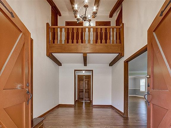 Beautiful landscapingCovered front porchBridge over creekBreakfast areaDetailed woodworkTile backsplash and floorsExposed beams
