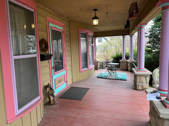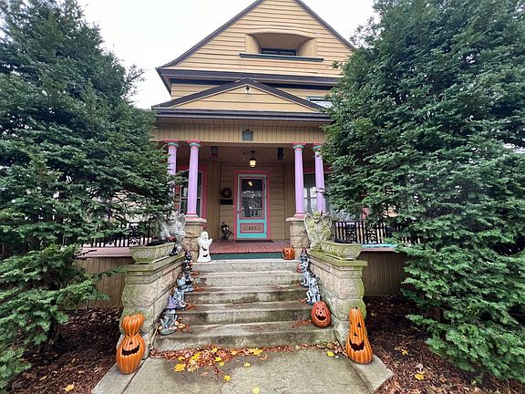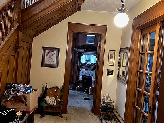 Beautiful oak staircase welcomes you into a Victorian home. Spacious but very efficient in design & energy w/4 heat zones. Leaded glass windows. Large pocket drs, 3 fireplaces (the Family room fireplace is functional, the other 2 are decorative). 5+ brs. Radiant floors in Family rm. Large wrap around front porch. Deck is maintenance free and the yard is fenced.