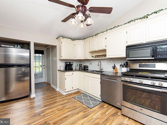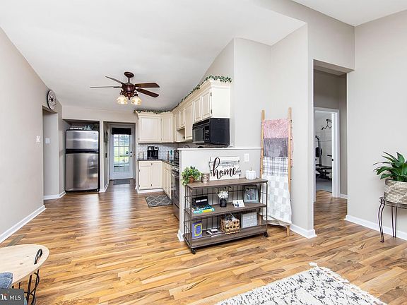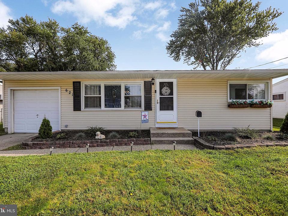 Don't miss this recently updated . Newer laminate wood look flooring & freshly painted interior. Spacious living room includes a soaring cathedral ceiling and a large picture window. Open concept with eat in kitchen with lots of white cabinetry, black stainless steel appliances, granite counter tops, backsplash. The kitchen also features a breakfast area and a vaulted ceiling with ceiling fan. Panty by the utility room. Full laundry room with extra office space/Large master bedroom and 2 good sized additional bedrooms with ample closet space. leaded glass door leads to deck and large yard with a large shed, fenced yard, backs to open soccer fields. Updated bathroom with new vanity & tub and surround. Remaining garage convert3ed to a work shop area. Light, bright & neutral. Can be ready for quick occupancy if needed. A lot of house for the money, Show and sell!!!