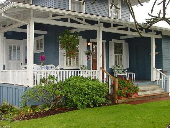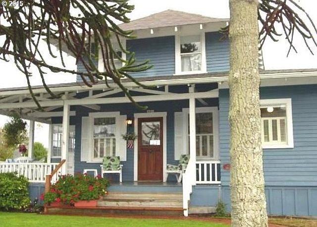 Vintage Craftsman beach cottage with large wrap-around porch. Bell-chapel upstairs with two bedrooms and a bath up, plus the living room, kitchen, study, one bedroom, full bathroom and a large sunroom/dining room down stairs. The daylight basement houses the washer, dryer, furnace, and On-Demand hot water heater, plus storage and a craft room. The 800 sq. ft, two-car garage has a 580 sq. ft studio apartment in the overhead loft which is currently used as an income producing property.