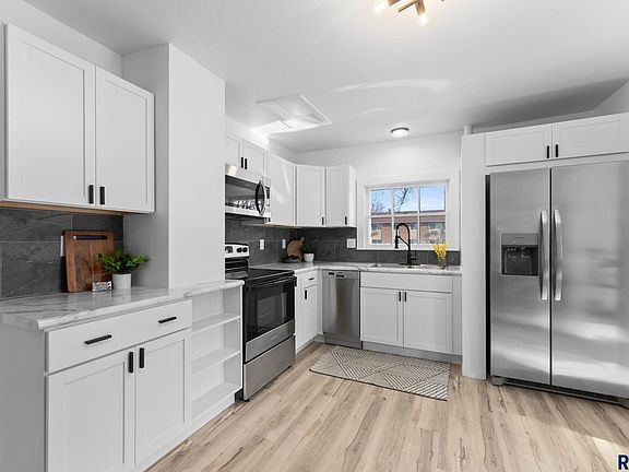 Step into what feels like a brand new home, WITH 4 BEDROOMS AND 2 BATHS, fully transformed with top-to-bottom updates that leave nothing to be done but move in and enjoy! There is so much home here for this price. From the moment you arrive, you'll notice the fresh NEW exterior paint, NEW roof, NEW gutters, and thoughtfully redesigned landscaping that give this home incredible curb appeal. Inside, the transformation continues with all NEW interior paint, NEW luxury vinyl plank flooring, NEW plush carpet, and stylish NEW six-panel doors with updated hardware throughout. The stunning COMPLETELY ALL NEW kitchen TOP TO BOTTOM is a showstopper, featuring sleek stainless steel appliances, modern cabinetry, and beautiful high def countertops. Both bathrooms have been completely renovated with NEW sinks, fixtures, new bathtub, new flooring both offering a spa-like experience unlike anything else in this price range. The entire basement has just been finished COMPLETELY ALL NEW, providing additional brand-new living space perfect for a rec room, home offices, or additional living room space. A NEW furnace, NEW AC, NEW electrical panel and NEW water heater offer peace of mind for years and years to come. Step outside and enjoy a large back yard with mature trees and a yard that provides a sense of the country and separation from neighbors. Plenty of room to add the garage of your dreams! Truly, the updates are endless and this is the kind of home you have to see to believe. Don’t miss your chance to own this spectacular, move-in-ready property! Seller is a licensed real estate agent in the state of South Dakota.