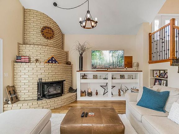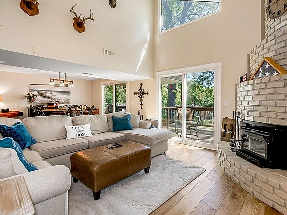 Welcome to this stunning 3-bedroom, 2.5-bathroom First Tier home nestled on highly sought-after Lake Waukomis. This home features a new roof, installed summer of 2022. Step into the heart of the home, where a stunning brick fireplace anchors the living space. The living room features unique built-ins along the staircase, adding a touch of character and practicality to the space. The kitchen showcases beautifully crafted wood cabinets, with an eat-in space with views of the lake. The primary bedroom is a true retreat, featuring a private balcony that overlooks the lake, providing a perfect spot for morning coffee or evening relaxation. The large deck gives plenty of space to view the lake. Additionally, there are two stone patio spaces perfect for a firepit. This first-tier home comes with its own private dock, welcome home!!