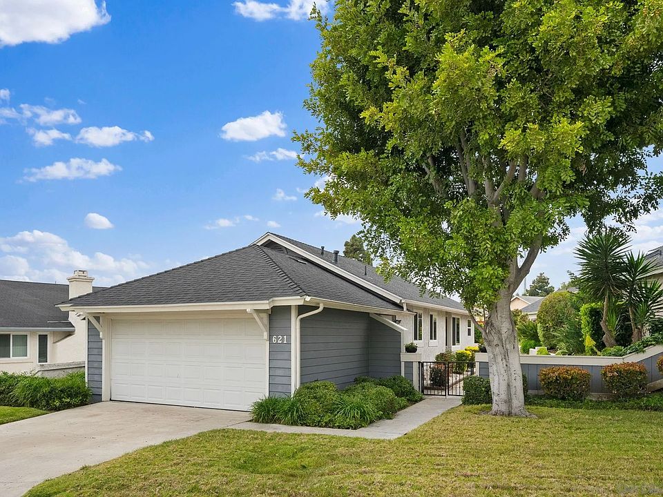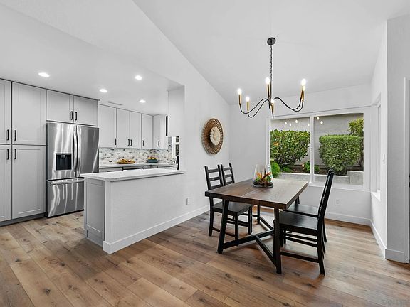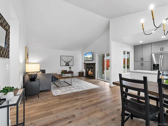 Welcome to the vibrant Sunbow community of Chula Vista with this single-level home that has been completely remodeled to perfection, offering the ideal blend of luxury and comfort! As you step inside, you're greeted by the grandeur of a vaulted ceiling in the great room, accentuated by a cozy fireplace that sets the perfect ambiance for gatherings or quiet evenings in. The heart of this home is undoubtedly the designer-finished kitchen, boasting all-new stainless steel appliances, brand new cabinets, quartz countertops, and a seamless flow into the spacious dining room. Every detail has been meticulously attended to, with all-new dual pane windows, new LVP wide-plank flooring, a brand-new kitchen, 2 brand new bathrooms, newer roof, and AC system, ensuring durability and minimal maintenance for years to come. Retreat to the primary suite with an en-suite bathroom that is straight out of a magazine with a free standing dual vanity and a stunning shower enclosed by a sleek glass barn door. The private backyard features Trex decking and a charming pergola, perfect for enjoying al fresco dining and soaking up the California sunshine this summer. With a low HOA fee of just $135 per month, which covers front yard maintenance, access to the community pool, and RV/boat parking available for an additional $25 per month, you'll enjoy added convenience and peace of mind. Located just moments away from shopping, parks, tennis courts, and easy freeway access, this home offers the quintessential Southern California lifestyle. Don't miss your chance to make this Sunbow sanctuary your own!
