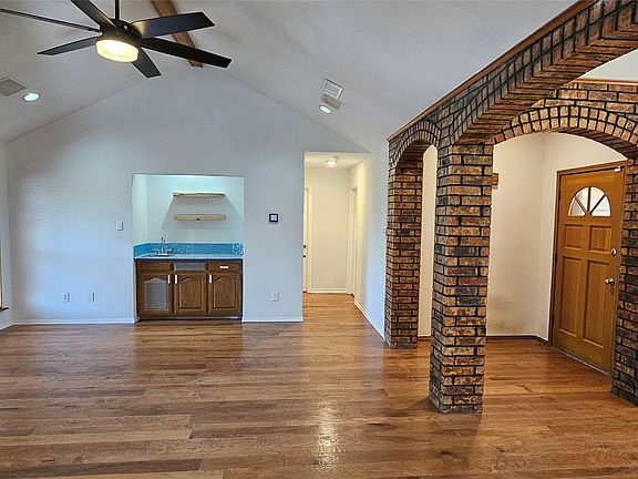 Beautiful Brick Home on desirable 1 Acre lot in New Hope (McKinney). Open Floor Plan with 3 bedrooms, 2 full bathrooms and 2 car attached garage. LED lighting throughout the home. Built in speakers. Fans in every rooms. Brand new hardwood flooring in all bedrooms, new toilets in both bathrooms, and new vanity sink in main bathroom. Wood Flooring in Living Area and Dining Room. Skylight in Master Bath. New Aerobic Septic system installed in 2023. Roof Turbines replaced in 2022. New Electric Water Heater, Dishwasher, and Disposal replaced in 2021. Garage Door and Opener replaced in 2017. Granite Countertops and built-in Cabinets. A Wet Bar with granite countertop is included in the main room. Huge Asphalt and Concrete Driveway. Stone Patio with fenced-in backyard. 2 storage buildings.