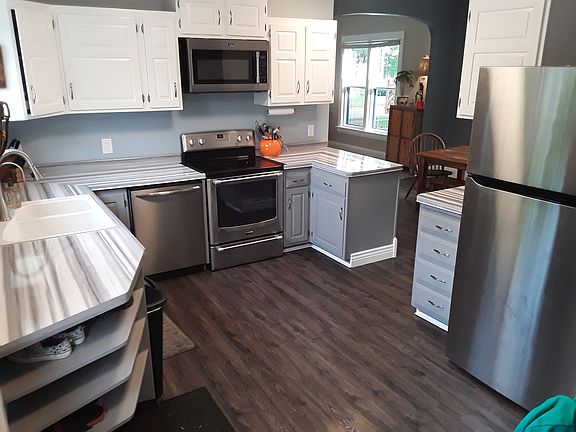 Classic gambrel 2 story restored with modern touches. Located on a nice corner lot within walking distance to grade school. Insulated oversized 2 stall garage with work area, and a good sized shed. New paint inside and out! New windows in basement! Open kitchen with all new stainless appliances looks into dining room and living room. Main floor also offers a living room, master, and laundry. 2 bedrooms, a bathroom, and ample storage on the 2nd floor. New carpet and easy to clean vinyl flooring throughout! Willing to pay purchasers agents fees! Call Sam anytime with questions or for showing. (605)520-1054