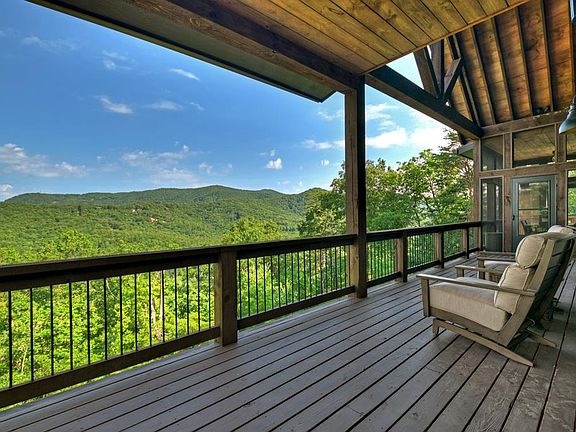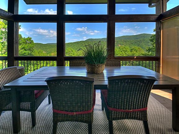 Location, Location, Location! Blue Ridge Heights Luxury Mountain Masterpiece with majestic mountain view. Custom home featuring 5 bedrooms, 3 bathrooms and wide open spaces. Covered rocking chair front porch with seasonal view. Foyer entrance opens to the great room with soaring ceilings, stone fireplace, and a wall of glass framing the long range mountain views. Chefs kitchen, island bar, gas range with pot filler, & walk in pantry. Master ensuite featuring mountain views, spa like bath with soaking tub, walk in shower, & double sinks. Guest suite on main level and 2nd full bath. Tall 8' doors, leathered granite counters, custom cabinetry and upgrades throughout. Covered & screened porch along the entire view side of the home overlooking mountains, and quiet Weaver Creek Valley below. Basement offers entertainment space galore. Wet bar, game room, 3 guest suites with room for 4th bath & ample terrace space w/hot tub. 2 Car garage attached by covered breezeway leading to mud room entrance. Generac whole house generator, outdoor fire pit with seating area, mature landscaping in exclusive neighborhood of luxury homes. All paved access and 5 minutes to downtown Blue Ridge in the highly sought after Blue Ridge Heights overlooking Weaver Creek. Home has never been rented, would make a fantastic STR though. Offered partially furnished with acceptable offer.