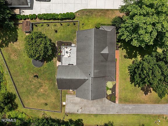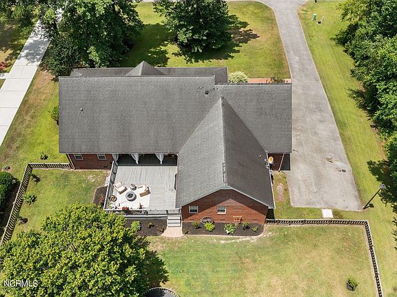 Behold this charming brick home in the Rock Creek subdivision. The mature, flourishing landscaping leads to a spacious front porch that wraps around the house. Inside, the living room features high cathedral ceilings that seamlessly merge with the elegantly designed eat-in kitchen adorned with granite countertops. The classic white cabinets house built-ins, including an oven and microwave. The dining room adjacent to the kitchen and living room creates a perfect flow. The master bedroom boasts a double vanity sink and custom closet by California Closet, it's truly one of a kind. The property also includes a large tree-lined backyard, a covered deck, offering additional retreat. This home exudes a warm, welcoming ambiance. Make an appointment today and experience it for yourself!