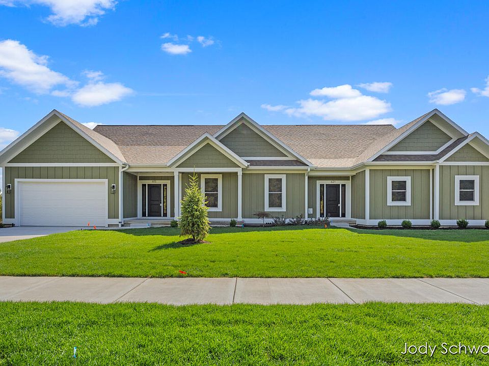 Welcome home to Ranney Village, where you'll find a bright and cheery 3-bedroom, 3-bathroom freshly built condo with vaulted ceilings, an open floor plan, main floor laundry, and located near Candelstone Golf. The stunning kitchen features Samsung stainless steel appliances, quartz countertops, an island with bar-seating and storage, and porcelain tile backsplash. The primary ensuite includes custom trim, an inviting atmosphere, and a private bathroom with quartz countertop. This condo is quality built and includes LVP throughout, custom closet organizers, 200 amp service, power vent water heater, 90% efficient furnace, and a 1 Year Warranty. Come and join this growing community! Lower Level to be completed before closing. First year HOA dues are FREE with this unit!