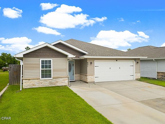 'CURRENTLY UNDER CONTRACT, SELLER WILL CONSIDER BACKUP OFFERS Immaculate well-maintained home! NO HOA. This home is perfectly located near Tyndall Air Force Base, not far from public boat ramps, shopping and schools. Step inside to discover an open-concept living space, featuring tile flooring throughout the main areas. The kitchen is a delight, boasting custom cabinetry and sleek stainless steel appliances, perfect for preparing delicious meals. Retreat to the master bedroom, where you'll find a stunning tray ceiling that adds a touch of sophistication. The master bathroom offers a double vanity, a tub/shower combo, and a spacious walk-in closet, providing both comfort and style. Enjoy the outdoors in your privacy-fenced yard, complete with a covered patio—ideal for relaxing or entertaining guests. The 2-car garage provides ample space for vehicles and storage. Additionally, the home is equipped with hurricane shutters and gutters, ensuring peace of mind during stormy weather. One of the many advantages of this property is that it is not part of a homeowners association (HOA), giving you the freedom to enjoy your home without additional restrictions or fees. This home is also not located in a flood zone that your lender will require flood insurance. Don't miss this opportunity to own a fantastic home in a prime location. Schedule a showing today and make this house your new home!