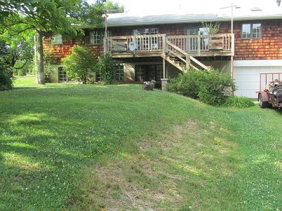 3 BR Ranch features Foyer, LR, spacious Kit/Dinette/Family Rm. Combo w/ slider to deck. Solid wood core doors thru out; Full walkout basement w/ 3 large windows overlooking spacious yard. Incidentals: CAC, Kit. w/ cherry cabinetry, skylight, double stainless sink, DW plus pocket door separating laundry room, MBR bath/stall shower, insulated windows. Basement has lots of possibilities - 12 Ft. course block. Exterior: Cedar Shakes, 2-car attached garage in front plus 2-car garage under rear of house. 2.66 Acre property.