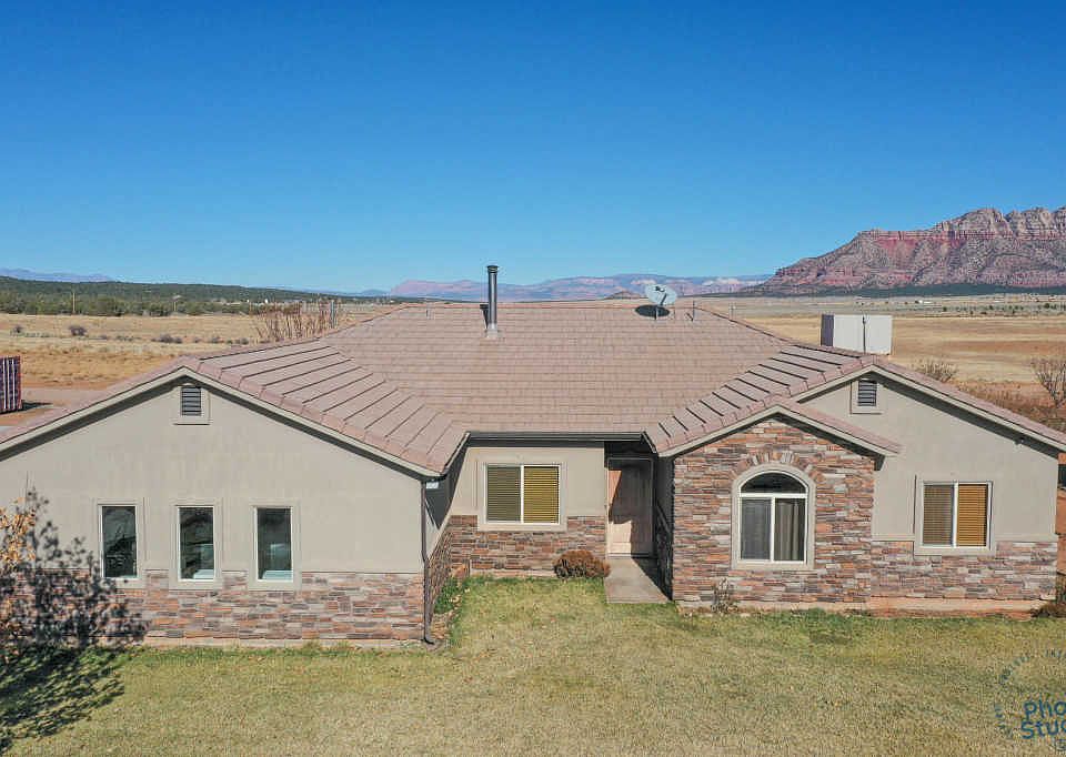 Own your own piece of paradise! Beautiful custom home on approx. 10 acres with unmatched views of Zion, Smithsonian Butte & Canaan Mtn. Too many custom finishes to mention. Huge 42'x80' insulated steel bldg. on property. Enjoy your own well, garden area, root cellar, high tunnel greenhouse, orchard & more. Property is in process of being split & will include a 10 acre parcel. Unique opportunity!