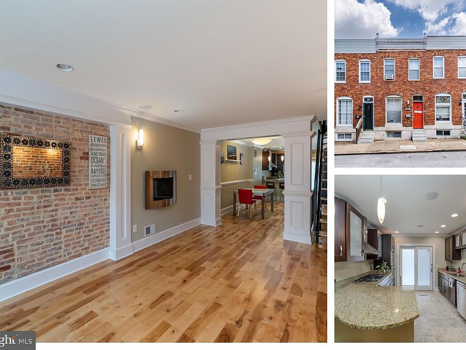 BEAUTIFULLY DESIGNED HOME STEPS FROM PATTERSON PARK IN CANTON: 3 Bedrooms, 3 full bathrooms: This beautifully designed home features newly resurfaced hardwood floors, custom-crafted woodwork, and moldings, tastefully exposed brick, built-in shelving, built-in speaker system, multiple wall mounted fireplaces, custom tile work, a large soaker jacuzzi tub, and an open staircase. Enjoy the open concept with a dining area, upgraded kitchen with seating, granite countertops, stainless steel appliances, built-in wall oven and microwave, range hood, and upgraded sliding doors that lead to a parking pad. Enjoy the outdoors at Patterson Park or on one of the multiple-level decks including a rooftop deck (deck furniture included in sale) with city and park views. Many restaurants in the neighborhood with shopping nearby and easy access to commuter routes. Buyers may qualify for live near your work grants or downpayment assistance programs. Contact the listing office today to schedule a private tour.