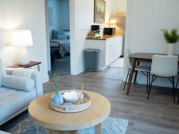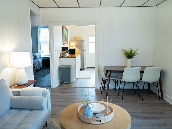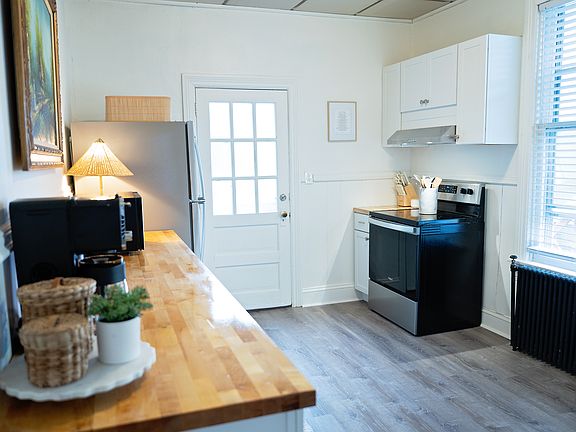 Welcome to your cozy 2-bedroom guest suite in the small town of Myerstown, PA. This rental offers a comfortable and secure living space with modern updates. Note: All furniture seen in pictures is available to rent or purchase. Utilities: We pay for trash, sewer, water, electric, heat/air conditioning, lawn care and snow removal. As you enter, you'll have the convenience of a private side entrance, ensuring your privacy and ease of access. This first-level apartment boasts a Schlage lock for security and peace of mind. The bedrooms are well-appointed, with Bedroom 1 featuring a queen-sized bed and a small closet with tall windows. Bedroom 2 offers a regular closet. Both bedrooms provide comfortable and inviting spaces for rest. The bathroom has a shower-tub combo, single vanity, and toilet, providing all the essentials for your personal care needs. In the living room, you'll find the perfect amount of space for your couch, the front door entrance, and a nice corner for your kitchen table. The semi-open kitchen features stainless steel appliances and butcher block countertops, providing a stylish and functional space for culinary endeavors. This apartment includes central air and is heated by a heat pump. For added convenience, the outside entrance basement (which is across the street) has a coin based washer and dryer, making laundry a breeze. The floors throughout the apartment are a combination of vinyl plank and hardwood, adding a touch of warmth and elegance to the space. Step outside to the nice-sized shared grass backyard, where you can relax and soak in the outdoors. Additionally, a shared front deck creates a welcoming space to enjoy the fresh air. This rental is conveniently located within walking distance of Myerstown Community Park, offering outdoor recreation and leisure activities opportunities like fishing, basketball, playground, swimming pool, or having a picnic. Within a short drive, you'll find stores and restaurants, providing easy access to shopping and dining options. Experience the comfort and convenience of this cozy 2-bedroom apartment in Myerstown, PA. With its charming small-town location, modern amenities, and nearby amenities, this rental is an ideal place to call home. Lease terms: -Owner provides cost coverage for water, sewer, lawn care, snow removal, and trash. -Renter is required to pay for electric which includes the cost of the central air and heat pump usage. -No smoking is allowed inside the apartment. -No pets allowed.