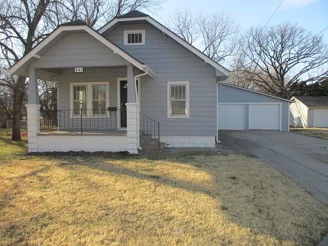 Updated and move-in ready condition. New composition roof, new HVAC system w/Nest thermostat, new stainless steel Whirlpool kitchen appliances, new flooring, new brushed nickel light fixture, fresh coat of interior and exterior paint. Charming bungalow style home located in Newton, KS. Covered front porch, attached 2-car garage, fenced backyard and covered patio area. Interior of home offers over 900 square feet of living space, wood burning fireplace, main floor laundry and partial unfinished basement. Great location with easy access to shopping, dining, parks, and downtown Newton.