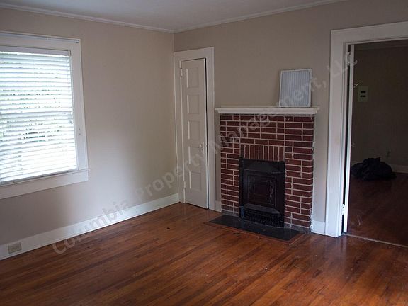 1 bedroom, 1 bathroom, living room, kitchen with stove and refrigerator. Vinyl and hardwood flooring, stack washer and dryer unit included, central heat and air, on-street parking, pet restrictions, $15 a month water charge. Duplex in Rosewood-close to downtown and USC campus.