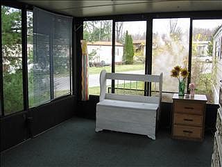 AFFORDABLE LIVING.WONDERFUL ENCLOSED PORCH W/ WRAP AROUND WINDOWS FOR 3 SEASON ENJOYMENT. OPEN LIVING ROOM-KITCHEN W/LARGE WINDOWS.3 GOOD SIZED BEDROOMS.BATH HAS A LARGE VANITY.WINDOWS APPROX. 8 YRS. OLD. BACK DECK TO NICE PLAYYARD. SHED FOR STORAGE.DISHWASER DOES NOT WORK.LR PAINTED LIGHT COLOR.SOME REPAIRS DONE. COME SEE!