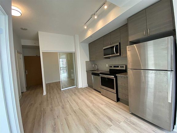 Amazing Vida Condo. Brand New Never Lived In. 592 Sq Ft. 9 Ft Ceiling. 2 Bed With 1 Bath, Laminate Floor Throughout. Open Airy Concept Kitchen With Upgraded Cabinets And Lighting, Living & Dining Area, Built-In Appliances, Granite Countertop. Balcony. Close To Subway. 24 Hrs Concierge.