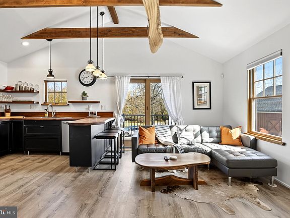Incredibly unique space - fully furnished! 621 Sugars Bridge Rd is about as versatile as it gets, with a 1-bedroom apartment, a separate artisan’s studio, and a fully outfitted working garage. This home could be a potentially great fit for an artist, seamstress, woodworker or other craftsperson who needs a chic, designer space to work or meet clients. Each living space is fully furnished and impeccably designed. The walkup apartment with private entrance offers 1.5 bathrooms, a spacious living room and bedroom, laundry, a designer kitchen and dining space, and a back terrace. Chic and stylish, this home is fully updated and offers charismatic touches that include exposed wood beams, new appliances, and a designer tile kitchen backsplash. The studio is equally impressive with rustic wood finishes and exposed rafters. It also has its own private entrance and offers excellent light – a bright, open space that can be used as a studio or potentially as a residence or to set up an Airbnb, offering a full bathroom and a partial kitchenette, as well as a covered side patio. 621 Sugars Bridge Rd also offers 3 off-street driveway parking spaces as well as a 2-car oversized garage. And what a garage! This space could easily double as another workspace and is outfitted with electric, a separate storage area, hot water heater, and a half bathroom with a slop sink. There are so many possibilities for these impressive spaces. Located near the corner of Sugars Bridge and Strasburg Roads, you’ll have convenient access to Downingtown, West Chester Borough, and Kennett Square. Stroud Preserve is minutes away in one direction and ChesLen Preserve in the other, offering a wealth of nearby hiking and nature trails. This special property deserves a personal visit. Request a tour today!