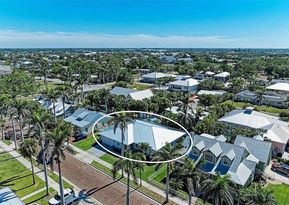 Enjoy living in Downtown Punta Gorda in this LIKE NEW 4 bedroom, 2 bathroom, 2 car garage home on Trabue, a charming historic street with bricked pavement, in the heart of downtown Punta Gorda, nearby to the Harborwalk, Fishermen's Village & Marina, tennis and pickleball courts, great shopping, restaurants, weekly farmers markets, music festivals, marinas, parks, and more! This home has a NEW 2023 Metal roof, full hurricane protection, upgraded overhead plumbing, new garage door, motorized lift to attic in garage for easy lifting in storage, and was totally remodeled inside and outside in 2020 with beautiful finishes including quartzite counters, custom cabinetry, plank tile flooring, appliances 5 years old, and then new flooring, base and doors were installed after Milton. Updates also include new AC in 2024, new landscaping, TRANSFERRABLE FLOOD INSURANCE and more! Thoughtfully designed with a fantastic floor plan, enjoy the primary bedroom with en-suite bathroom on one side of the home and the guest side with 2 bedrooms and a shared bathroom on the opposite side of the kitchen and great room, are perfect for privacy! The entertaining spaces of this home are STUNNING, with the kitchen and island area open to the living room, all with beautiful natural light. The added bonus room in the back makes a perfect flex space for work from home or extra guests and overlooks a beautiful and serene backyard. Host great events with friends at your backyard firepit with pergola or enjoy morning coffee as you great your neighbors on the screened front porch. This home has it all and is priced to sell! Schedule your showing today and BE SURE TO CLICK THE FULL VIRTUAL TOUR LINKS FOR DETAILS!