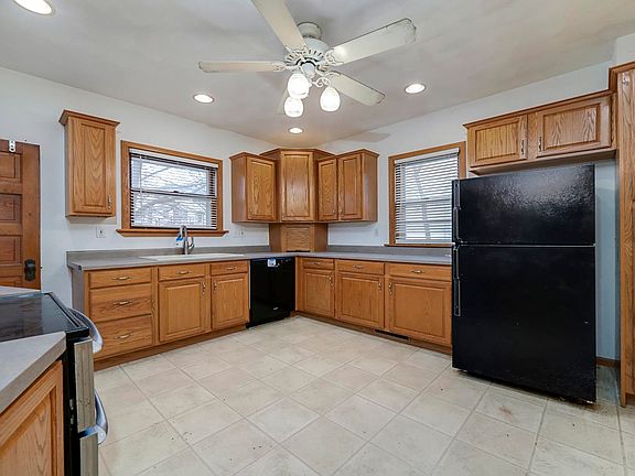 WELCOME HOME to this Cozy 2 bedroom home with Formal Living Room, and Eat-in Kitchen loaded with Appliances. Spacious living room, dining room and kitchen. One bedroom has a walk-in closet and 2nd bedroom has two closets. Updated bathroom with new toilet, new sink and vanity, fenced yard, storage area in garage. NEW vinyl replacement windows. Huge backyard. Covered back porch. Detached 2 car garage. Enjoy this double lot! Make this home yours! Schedule a showing today!