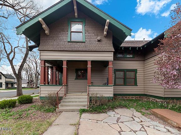 Fabulous investment opportunity in Downtown Flagstaff. This historic Craftsman Style home with a view of the San Francisco Peaks is only a few blocks west of downtown Flagstaff, 3 blocks east of Thorpe Park with numerous recreational opportunities, less than a mile SW of the hospital, and less than a mile NW of NAU. This location couldn't possibly be better for single tenants looking for an affordable studio apartment (5 to choose from) with close proximity to most of what Flagstaff has to offer, or for someone needing a slightly larger 2 bed/2 bath apartment. This multi-family property has been almost 100% occupied throughout the period the current owner has owned and lived in the home. Lovely Craftsman design, beautiful original Douglas Fir wood flooring in the living room and dining room, wonderful decorative (but functional) gas stove, spacious updated kitchen, primary bath with jetted tub, a basement that includes a larger recreation room or office, an all available in the 2 bedroom unit. This is truly a unique property with terrific investment potential.