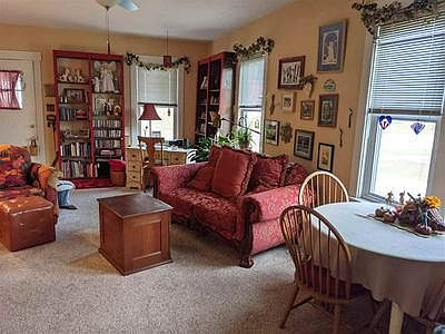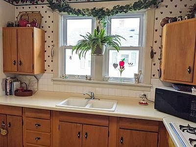Enclosed front porch brings you into a huge living room, kitchen with all appliances, door to walk up floored attic that could be additional finished space with over 400 sqft, enclosed back porch to relax and enjoy. Two bedrooms with hardwood floors and full bath with jetted tub. Hi Efficient gas forced furnace with central air, electric all circuit breakers, roof and windows have been updated. New hot water heater 12/20.