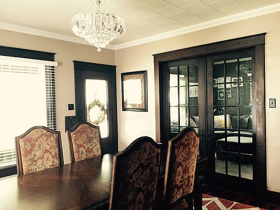 You are going to love the warm invitation from the welcoming porch as soon as you arrive! This is your perfect seat for the parade in August!!! Attractive 1,407 sqft home built in 1915 which includes a living room/family room, dining room, kitchen, 4 bedrooms all including a closet or two, 1 full bath and one half, basement, and utility. This home has also had a total kitchen and bath remodel; all of this will have you wanting to move in! Gorgeous woodwork and sliding french doors! Large 2 Car Garage (18x18) with the entrance off of the alley simplifies entering and exiting the property (enter from main street or alley) shared driveway with neighbors to the west, both parties share the cost of the gravel. Near park and hospital and on the parade route.
