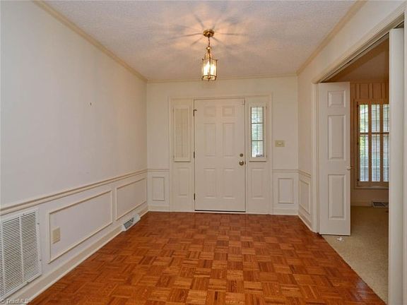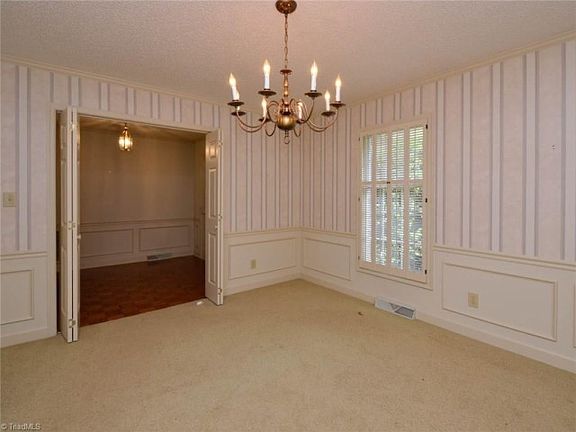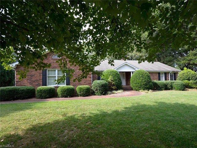 Great location in the heart of Kernersville across from fourth of July Park. Brick home with an inviting sunroom overlooks the patio and well manicured backyard. Features include large rooms with built-ins, spacious kitchen with breakfast area and laundry room with cabinets and counters. Living room has a wall of built-ins and gas fireplace that leads to the sunroom. With just a little TLC this home could be a showcase. Sold as is...Estate sale