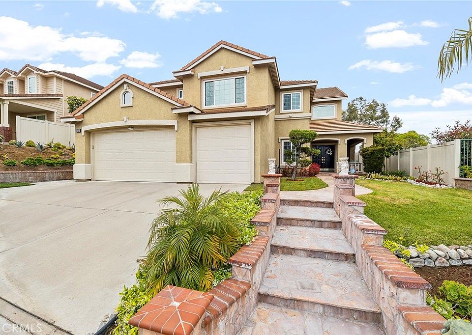 Welcome to 621 W Saint Andrews at West Hills gated community! This stunning model-like home awaits you. The 4 bedroom 3 bathroom home has a breathtaking panoramic view of mountains and city lights. Upon entry, you are charmed with a museum-like atmosphere where you are greeted with abundant sun lights and custom wall molding. Kitchen is luxuriously remodeled with a full slab marble island, matching marble countertops and completed with marble backsplash. The newer technology induction stove top and hood compliments the traditional yet modern look of the kitchen and the accent walls adds contemporary vibes. Included in the main floor are a bedroom, a bathroom with shower, a laundry room, and a storage room. Accent wall stairs will lead you to the second floor where the master suite with a deck, two secondary bedrooms, a den, and a bathroom are. Since the last sale, sellers did major upgrades to the property including laminate flooring throughout, new patio access door, HVAC system, garage doors, garage door opener, fence, recessed lights, installed water softener, landscaping and including fruit trees. Home is located near La Habra Marketplace, Amerige Heights Town Center, popular golf courses such as Westridge, Coyote Hills, and Los Coyotes. Must see it to appreciate the property with sellers' elegant touch to details.