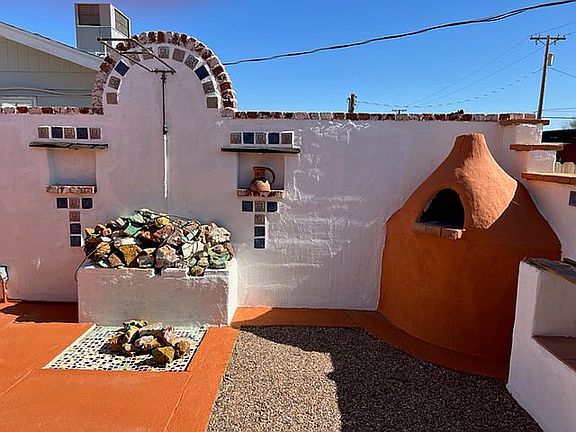 Beautifully done 4BR/2bath complete with outdoor shower! Saltillo tile throughout this 4-bedroom home. Master bedroom has access door to the covered back patio and outdoor shower area. Enjoy watching the local parades from your front porch. Covered back patio complete with pizza oven is great for outdoor entertaining. Privacy wall on both sides of house and backyard. Enjoy the artistic tile work through out the house and back patio area.
