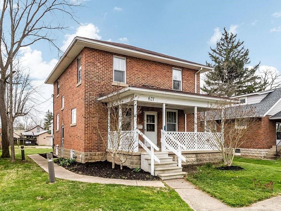 Remarkable two story home in terrific location, across from Liberty Union High School. Charming brick home with big front porch, large living room with fireplace, formal dining room, tall ceilings, handsome woodwork throughout, kitchen w/ newer cabinetry, 1st floor den, three big bedrooms upstairs and renovated full bath, very clean full basement. Homegard Home Warranty for New Buyer! Professional photos will be available online tonight. Showings start 9 am April 4, 2017.