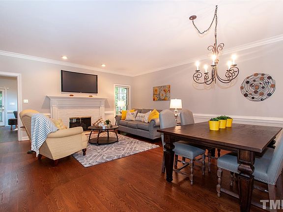 Lovely turn-key N Raleigh townhome on welcoming tree-lined street w/sidewalks. Convenient to Life Time Athletics, Healthtrax, Whole Foods, Harris Teeter, 540 & diverse restaurants. Enjoy a cup in the eat-in kitchen before walking to the home office adjacent to relaxing screened porch & patio. See-thru propane frpl, 2 large Master suites w/WIC's. New 2020 remodel, all stone countertops, all appl incl, 2019 roof, gutters & skylights. Spacious 3rd floor walk-up for future expansion. Comm pool, Nature park