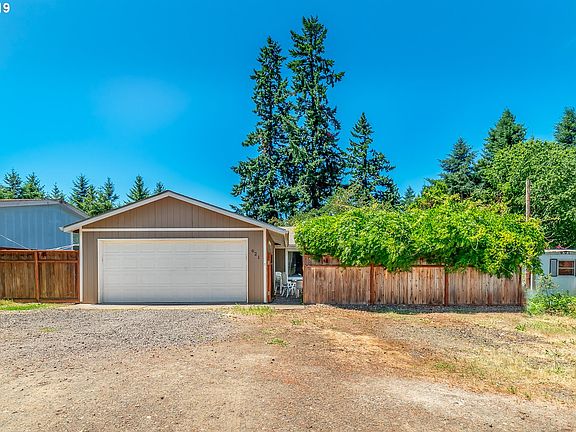 You'll never believe this is a manufactured home! Features tile bathrooms, kitchen floor & counters, and beautiful laminate flooring. Whole house wired for fiber! Pit set foundation is level w/ ground, and comes with completely finished & insulated 2 car garage. Privacy fenced back yard w/ raised beds, low maintenance landscaping. Privacy fence in back and front yards (partially sound proof for more serenity), plus 25 x 12 covered deck.