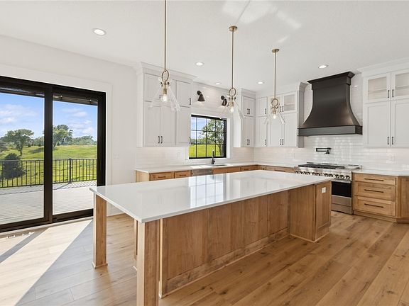 Welcome to Burl Oak 2, a private acreage community, with paved streets located only 2 miles south of Norwalk. Custom built walkout 1-1/2 story by Van Dam Construction with over 5,650 sq.ft. of finished living area. Beautiful 2.6 acre lot with pond & wooded countryside views. Foyer entry offers a 14’ ceiling with double doors leading to an open floor plan. Great room (24’6”X25’) showcases 20’6” ceilings and floor to ceiling windows. Stunning floating stringer stairs leads to all floors with LED lighting in stair treads. Sunny chef’s kitchen w/48” gas range, pot filler, 66X84 refrigerator, quartz counters, and 11’ center island to accommodate seating for 10. Walk-in pantry has message board & built-ins. First floor master suite with private access to laundry room, 6’ double sink vanity plus separate MBR make-up vanity. Two bedrooms upstairs, each w/ a full bath and walk-in closet. The loft overlooks the great room. Lower level offers “eye level” pond views! Enjoy entertaining with the large 25’ X 24’8” rec room and an extra large “L” shaped wet bar (seats 7). The office/craft room offers built-ins plus a large storage closet. There are two bedrooms and 3 baths down. A four car garage with split wall allows parking and hidden storage. Attached please see the long list of extensive upgrades and amenities included with this home.