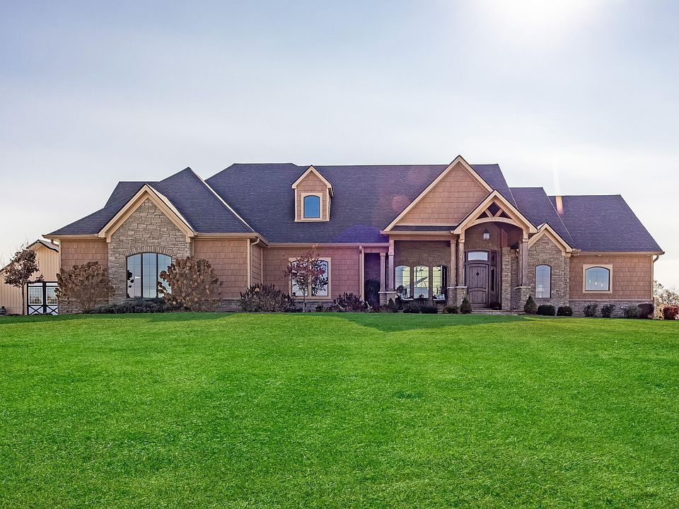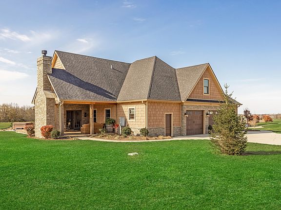 This exquisite luxury home, custom-built in 2019, sits on 15+/- gorgeous acres of pasture in the heart of Kentucky. It overlooks 100+ acres of sprawling farms. And with the covered outdoor hearth room facing west, the sunsets are simply breathtaking. Sellers spared no expense. Cathedral/tray ceilings, massive picture windows, dramatic wood beams, handcrafted millwork, hickory wood flooring, Tennessee flagstone patio/walkways, stacked stone fireplaces, custom wood cabinetry, chef's appliances, and designer fixtures. It's an absolute showplace, in a serene setting that's simply indescribable. You have to see it to believe it. Danville, Kentucky, a small college town 40 minutes south of Lexington, KY vibrant with arts and culture, was named one of CNN/Money Magazine's 'Top 25 Places To Retire.'. It overlooks spectacular views of gently rolling farmland and vibrant sunsets. If you're looking for more living space, a 15 by 20 ft space in the walk-in attic could become an additional room, and the nearly 2,000 sf unfinished basement already has a rough-in bath and vault/tornado safe room. The 36 by 48 ft Morton barn boasts 12 ft double doors, 13 ft ceilings with a poured concrete floor and features a cozy apartment suite/guest quarters with full attached bath. Currently used as a wood shop, the barn is equipped with built-in cabinetry and workbenches and has potential for horse stalls, motor home storage or endless other uses. No restrictions. Horses/farm animals permitted. This is a rare opportunity that offers the perfect combination of elegance, sophistication, and comfort in a beautiful countryside setting. Don't miss your chance to own one of Danville, Kentucky's most grandeur homes.