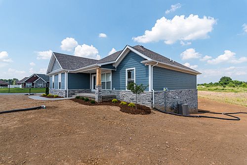 Standard options include, granite counter tops throughout, tile walk-in shower in master bath, covered patio, and rev-wood flooring through kitchen, great room and halls. All of Land-Mill's floor plans in Whispering Oaks II are also available as a slab (no basement) and a slab with bonus room.