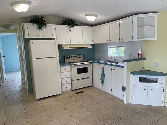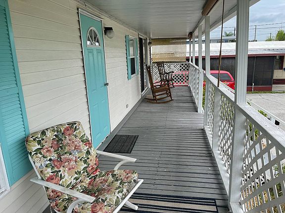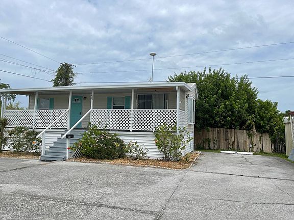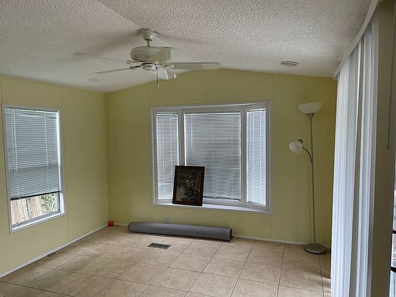 This is a mobile home for sale in a 55+, pet friendly community on a rented/leased lot. This home is great for year round or seasonal living! It is tucked away at the back of the community on the perimeter on one of the larger lots. This is a light, bright, 1BR/1BA mobile home that comes unfurnished for you to make your own! The eat in kitchen has 18" tile, a stove and refrigerator. The living area has 18" tile, panel walls and a ceiling fan. The bedroom has vinyl flooring, a built in closet and drawers, panel walls and a ceiling fan. The bathroom has a single sink vanity and a shower/tub combination. The 6 x 34 covered porch on the front is a great place to enjoy the weather and watch the world go by. There is a driveway that can park two cars, tandem style. The lot rent is $385 and includes trash.