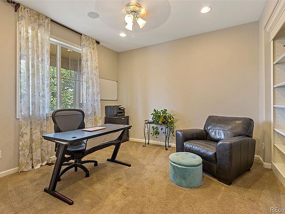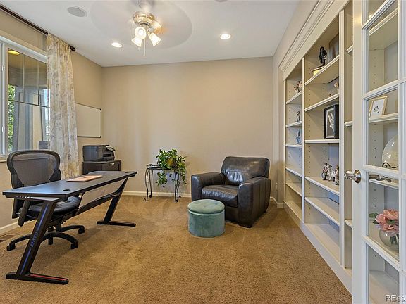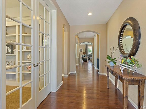 Greatly sought-after ranch-style home with 3-car garage in a beautiful, family-friendly neighborhood. The home office boasts beautiful built-in shelving and French doors. The dining room has a bay window, coffered ceiling, and crown molding, perfect for entertaining. The kitchen has plenty of cabinet space and granite countertops, stainless steel appliances, a walk-in pantry, and engineered wood flooring throughout. Great room with fireplace, big windows for natural lighting and plenty of room, speakers for surround sound or music to flow throughout the home. Master Suite has a 5-piece bathroom, with custom his and her closets. Three bedrooms on the main floor, along with the laundry/mudroom with garage access. The light and bright partially (1768 sq ft) finished basement gives your family an additional great room, full bath, 1 large bedroom, and 1 non-conforming bedroom, and a huge storage room. The front and back yard has underground sprinklers and a drip system. There is a beautiful deck in this backyard oasis with a pre-plumbed gas line for outdoor cooking. This home is a MUST SEE Located in Cobblestone Ranch with community pool, tennis courts & clubhouse. Conveniently located between Castle Rock & Parker town centers.