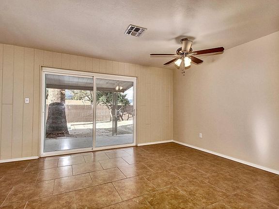 Seller will accept or counter offers from $184, 800--$189, 900. Outstanding renovated ranch style home with meticulous desert landscape and move-in ready. Soothing new two-tone interior palette, upgraded lighting, beautiful tile floor, ceiling fans, and gorgeous layered stone fireplace. Stunning new kitchen features stainless steel appliances, stylish laminate counters, and upgraded wood cabinetry with plenty of storage. Amazing family room with brick accent wall and endless possibilities. Plush new carpet & padding in all the right places. New deco surrounds in bathrooms with new lighting, vanities, and fixtures. Spectacular backyard boasts refreshing pool, swaying palm trees, extended covered patio, and play area. A must see ''gem'' in the desert