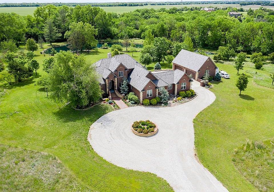 Exceptional Estate Home in Valley Center with separate mother-in-law quarters located on a scenic 7 acres. With over 4500 square feet, the main house features 5 bedrooms and 4 baths. The mother-in-law quarters is approximately 700 square feet with high-end finishes including attached garage, separate entrance, wood flooring, fireplace, granite kitchen, bedroom, and large luxurious bath! The main house enjoys exceptional views from the moment you walk through the front door. Soaring ceilings offer an expansive feel and large windows bring in the views of the scenic land along with plenty of natural light. The main floor provides access to the master suite also with incredible views and ensuite bath. Also found on the main floor is the formal dining and spacious kitchen with cherry wood cabinets, granite counters, informal eating space, kitchen island, and wonderful storage space. For convenience, a main floor powder bath and laundry are also available. The upper level includes a full guest bath, two well designed bedrooms - one with walk-in closet and custom buit-ins! Within the lower level you will find a large family room with plenty of space for a cozy TV area and game tables. Two very large bedrooms with walk-in closets, full guest bath, and walk-out access are added amenities. Outdoor life will be the real treat with a beautiful private setting full of mature timber, visits from wild turkey and deer, 1 acre pond, custom light scaping with endless features, custom landscaping, two-tiered deck with more than enough room for entertaining. The detached oversized 4 car garage flanks the motor court perfectly providing excellent space for all of your toys. Current owners have made significant improvements to the property including mother-in-law quarters, 4+ garage, custom light scaping and landscaping, new exterior entry and new circular brick/stone landscape feature, new drive, Davinci Roof, just to name a few. Easy access to highways, a short drive to the best of East Wichita, Valley Center Schools. This delightful home is full of hard to find amenities!