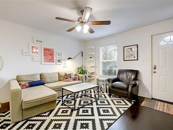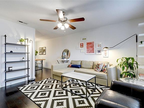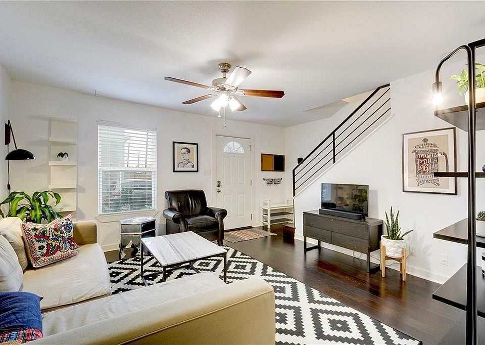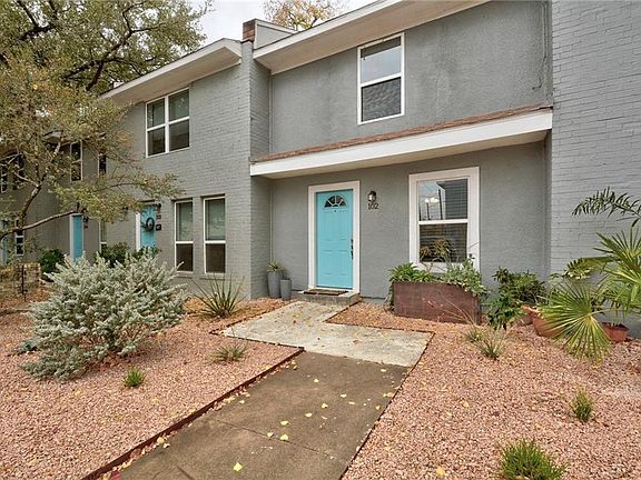 Beautifully updated condo/townhome in hot East Austin! Functional floor plan with 2 beds & full bath up, living/kitchen/half-bath & laundry down. Kitchen has designer back splash, granite counter tops, stainless appliances & breakfast bar. No carpet - wood everywhere except tile in kitchen & bath. Washer/dryer & fridge convey. Private fenced patio for outdoor entertaining. 2 reserved parking spaces. Minutes to UT, Mueller area & downtown.