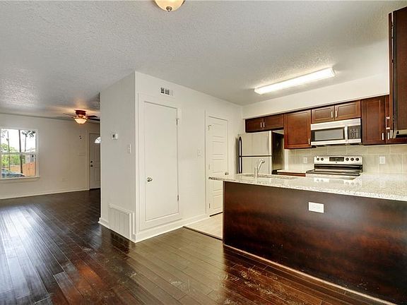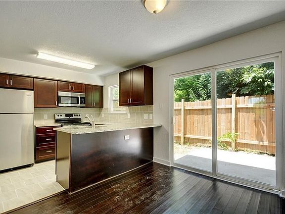 Townhome style condo with functional floor plan: wood/tile flooring throughout; 2 bedrooms & full bath up, living/kitchen/half-bath & laundry down. The kitchen has granite counter-tops, stainless appliances & breakfast bar. Private fenced patio 2 reserved parking spaces. Perfectly situated between I-35 and 183, the on-site CapMetro station conveniently delivers you to Mueller, UT & downtown, or mere minutes by vehicle or bicycle. This is an amazing opportunity to build equity.