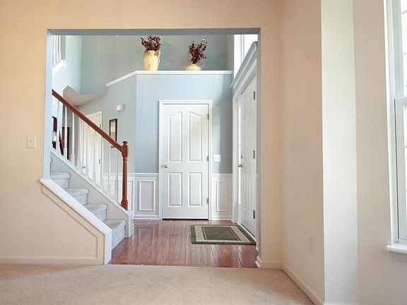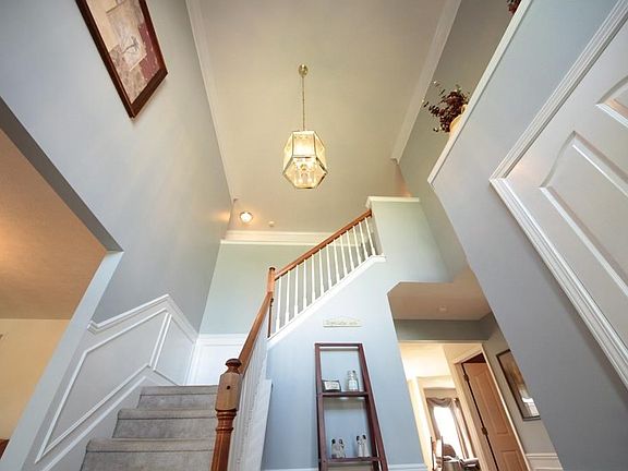 Love coming home to your 4bdrm 2 1/2 bath Pulte home in popular Mill Grove. Freshly painted 2 story entry w/beautiful crown molding & wainscoting.Open floor plan w/ real hardwood in kitchen and entry. Finished basement with new flooring & paint ready for entertaining, with separate finished room for workout/home office. Master Suite includes double vanity, garden tub/sep shower & huge walk in closet. Spacious lot adjacent to walking trail. Neighborhood pool, tennis & basketball courts.