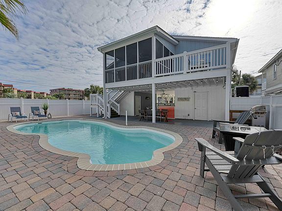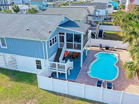 Cherry Grove Beach is where you will find this beautiful beach home. Located on a corner Lot with private pool, outdoor living area, lots of storage, 4 bedrooms, and updated! This lovely home is great for primary residency, second home or a rental investment. The current homeowner uses it as a second home and self-rents the home while they are not using it. The main floor of the home has 4 spacious bedrooms with 2 full baths, a living room, dining area and large kitchen with views. The Kitchen is nice size with breakfast bar, granite, white kitchen cabinets, stainless steel appliances, large pantry, and large picture window with views of the inlet and backyard pool. The home has lots of windows and glass doors – that bring in lots of natural light. There are also porches galore! You can start your day on the front porch with coffee and end on the back screen porch with your favorite afternoon beverage! Home is great for entertainment! The house is located at the end of Cherry Grove on a corner lot with lots of parking! One Block from the Beach, and across the street from the inlet. You can bring your boat and just blocks to the public boat ramp. This home is great for fishing and beach enthusiasts! This could be this is your new beach get away! On the first level, find your private pool, outdoor living area, half bath, laundry room, bar with TV, grilling area, private fence, and lots of storage! North Myrtle Beach has so much to offer, many festivals throughout the year, free main street concerts, lovely parks for walking, running, and pet friendly. NMB has become a year around resort area because of the great weather year around. We have the widest beaches and the intracoastal waterway – so water everywhere – find yourself; fishing, reading a book on the beach, boat cruising, bike riding, and golf cart cruising! Just miles away you will also find Little River – famous for the Blue Crab Festival in May which brings thousands of visitors to the area – Crafts, Food and Entertainment all in a few blocks! SO, if you are looking for a second home, primary residence, or investment – in NMB – Block to the Beach, bring your boat, RV and golf cart! You have found it – Call to view it today! This beach home in tip-top shape will not last long!