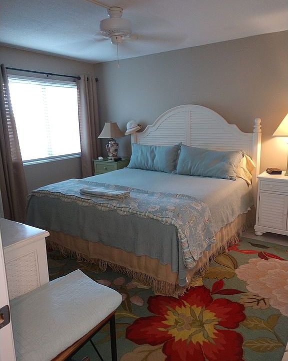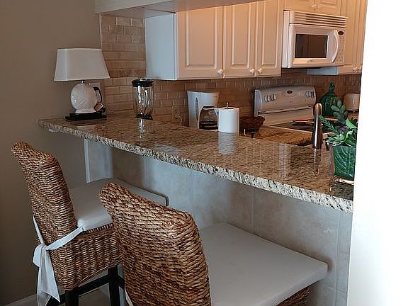 A wonderful Gulf-front one bedroom unit that comfortably sleeps 6! This spacious, fully furnished condo features 2 full baths, a private balcony, large exterior laundry room with full size washer/dryer, and exterior storage closet. This unit was renovated in 2020. Granite kitchen, Murphy Bed in the living room allows this condo to sleep 6. Tile and granite throughout, all new interior doors and millwork, and new patio door. Large master ensuite with King bed. New master bath with tiled shower with glass doors, comfort height commodes in both baths. The living room has a Murphy Bed and a sleeper sofa. A/C and water heater were replaced in 2016. The building is still being painted, so it will be all new outside!