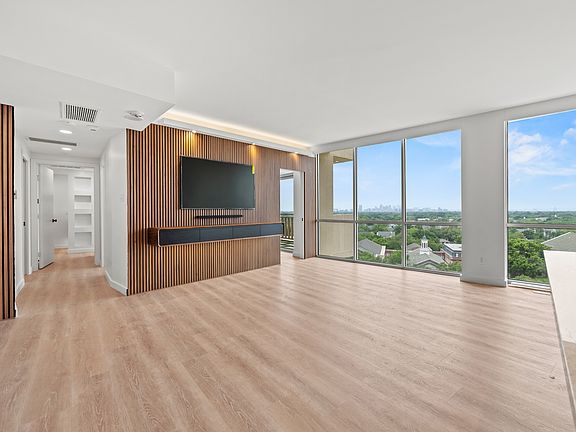 Floor-to-ceiling windows with stunning views of the Dallas skyline and Highland Park.