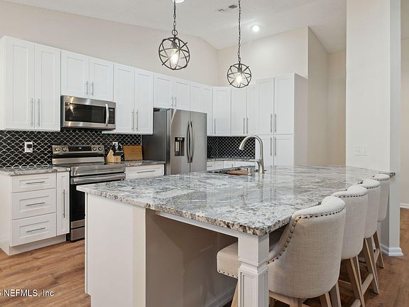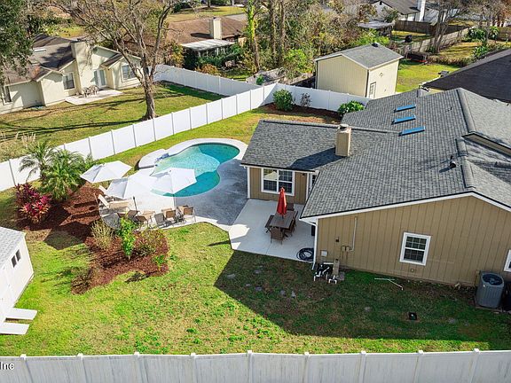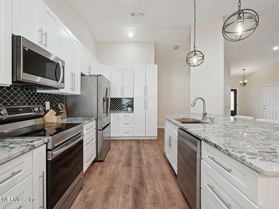 Welcome to this stunning 4-bedroom, 2-bathroom POOL home in the heart of Fleming Island. With 2,330 sq ft of thoughtfully designed living space, this home is perfect for modern living and entertaining. Step into the beautifully renovated kitchen, featuring granite countertops, sleek new cabinetry, and stainless steel appliances. The open floor plan is enhanced by fresh interior paint and durable laminate wood flooring throughout. The spacious master suite is a true retreat, offering a bay window, a generous walk-in closet with a custom organization system, and plenty of natural light. Located on a private cul-de-sac lot, the backyard is your personal oasis with an in-ground pool, a new putting green, a storage shed, and a recently installed vinyl fence for added privacy. Enjoy the convenience of key updates, including a newer roof (2019), HVAC system (2017), water heater (2021), and an epoxy-coated garage floor. Just minutes from shopping, dining & top schools.