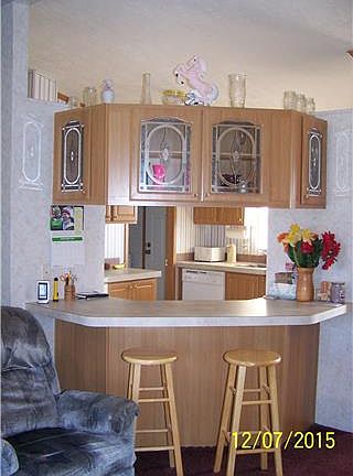 Beautiful, move-in ready.One-owner Mfg home on Perm Brick Fdn.3BR 2BA, All appliances remain NEW Frig, incl W/D.Kitchen has pass-thru eat-at bar. DR, LR, ceiling fans,Conv to Providence.FABULOUS Detached Garage (partial heat/cool/insul) Triple Tier Deck!