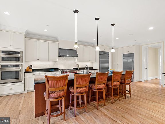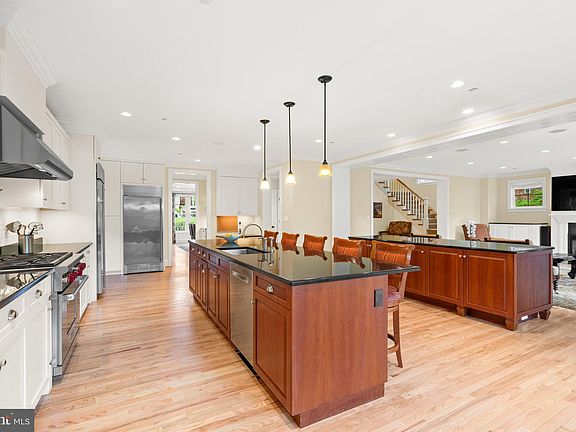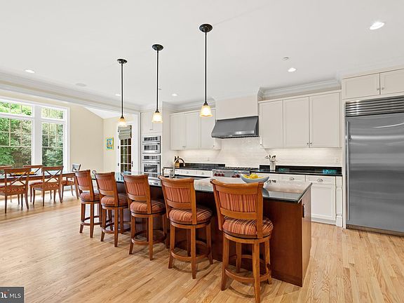 OPEN HOUSE CANCELLED. THE PROPERTY IS UNDER CONTRACT. Ideally located in the sought-after Mohican Hills neighborhood, this custom five-bedroom, four-and-a-half bath home was built in 2009 by Bethesda Builders. The charming front porch compliments the beautiful sun-filled interior, featuring newly refinished hardwood floors, detailed millwork, hard-wired speakers and oversized windows throughout. The spacious, open floor plan has incredible flow for entertaining and everyday living. The main level offers a welcoming foyer, a formal living room with tray ceilings, an elegant dining room with access to the butler’s pantry and a family room with a gas fireplace and sliding glass doors leading to the back deck. The gourmet eat-in kitchen highlights two oversized islands with additional storage and ample prep space, high-end stainless steel appliances (including a separate full-size Sub-Zero refrigerator and Wolf range/oven with a vent hood), walk-in pantry and a beautiful breakfast room with cathedral ceilings and access to on of the two screened-in porches and back deck. Rounding out this level is the mudroom with a built-in bench, two spacious closets and access to the garage. The second level features four bedrooms, three full baths, ample closet storage and a conveniently located laundry room. The oversized primary suite boasts his/her custom, walk-in closets and a spa-like ensuite bath with dual vanities, a walk-in shower, and soaking tub. One of the additional bedrooms is soundproofed and includes built-ins and an ensuite bathroom, creating the ideal space and environment for a home office. The sizable walk-out lower level includes a recreation room with space for additional rooms and access to a beautiful screened-in porch, complete with two ceiling fans and Bose speakers. Rounding out this level is a fifth bedroom and full bathroom, ideal for an in-law or an au pair and an oversized utility/storage room. Completing this exceptional home is the professionally landscaped exterior with mature plantings. The rear exterior offers multiple places for entertaining including two screened-in porches, a back deck with a gas line hook-up, flat yard and charming front porch. Located within easy walking distance to the beautiful Mohican Hills Pool, this home offers easy access to Washington DC, Virginia, and all airports, while also being within close proximity to the C&O Canal, bike and jogging trails, as well as the shops, restaurants, and amenities of Bethesda, Westbard, and Sumner Place.